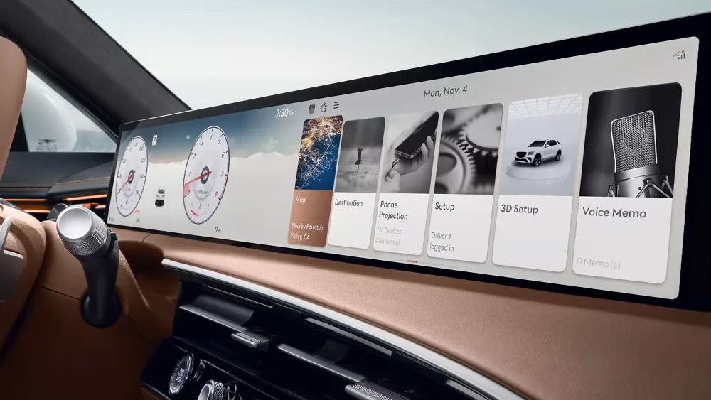 New Genesis EVs are showcases for the latest technology, such as the 27-inch dashboard display that sprawls across the dashboard of the 2026 Genesis GV70 Electrified. That display is home to a user-friendly infotainment touchscreen and a handy digital gauge display. The touchscreen works well with the SUV's wireless Apple CarPlay® and Android Auto™ connectivity. An onboard Wi-Fi® hotspot transforms the SUV into a mobile office or homework hub whenever necessary.