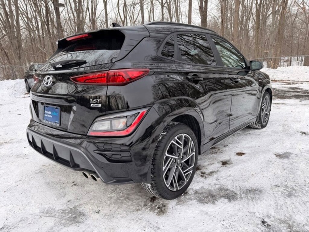 Odometer is 12575 miles below market average! Ultra Black Pearl 2023 Hyundai Kona N Line AWD Shiftronic I4
