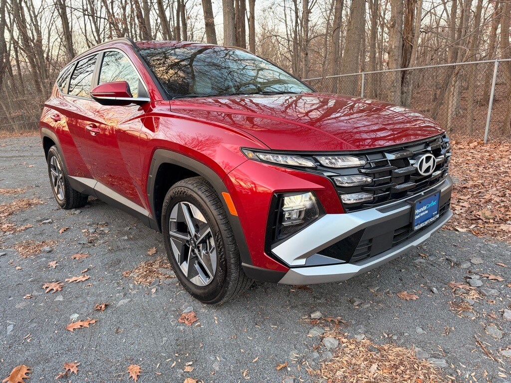 Certified. AWD. Ultimate Red 2025 Hyundai Tucson SEL Convenience AWD 8-Speed Automatic with SHIFTRONIC 2.5L I4 DGI DOHC 16V LEV3-SULEV30 187hp